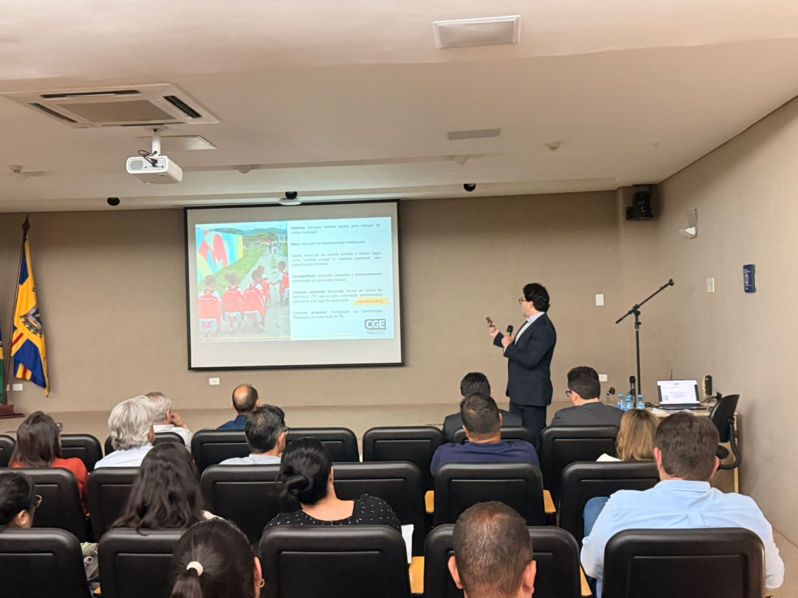 A palestra foi ministrada por auditores da CGE-MS e contou com a presença do Diretor-Presidente da Ageprev, Jorge Oliveira Martins, e do Controlador-Geral do Estado, Carlos Eduardo Girão. Durante o encontro, foram abordados temas como controle de riscos, integridade institucional, governança e o fortalecimento da cultura organizacional no serviço público.