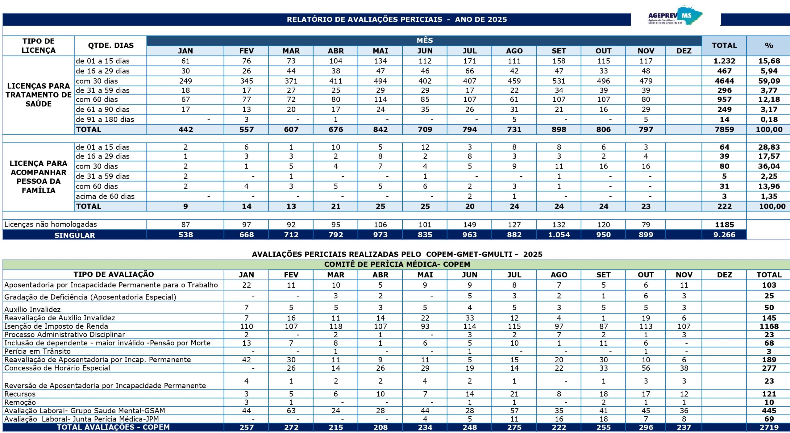 Os números mostram que de janeiro a Novembro de 2025 foram contabilizados 24.662 procedimentos. Entre os registros mais comuns, as emissões de certidão e declaração de tempo de contribuição estão no topo da lista, com um total de 2.535 emitidas. Já os deferimentos de aposentadoria por tempo de contribuição, correspondem a 431. Também integram o documento, as pensões por morte deferidas, que correspondem a 382, seguido por transferência para reserva, com 119 registros.