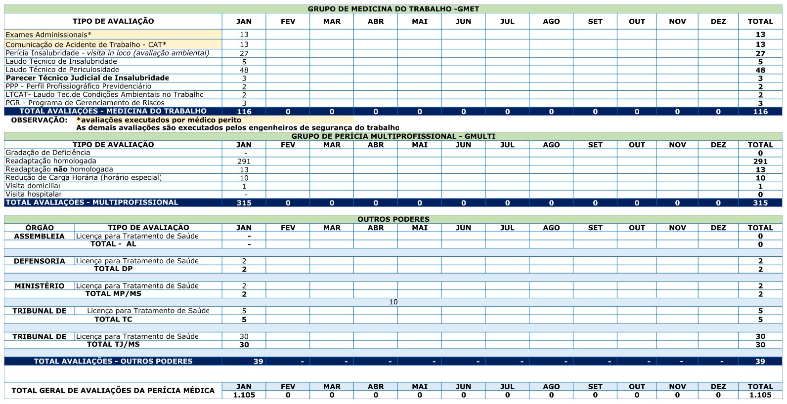 Destaca-se também o volume de atendimentos realizados pela Perícia Médica, volume esse que totalizou 1.105 atendimentos que vão desde concessão de licenças médicas, análise para readaptação provisória, pedidos de aposentadoria por invalidez, exames admissionais, perícia para confirmação de insalubridade, programa de prevenção de riscos ambientais, dentre outros.